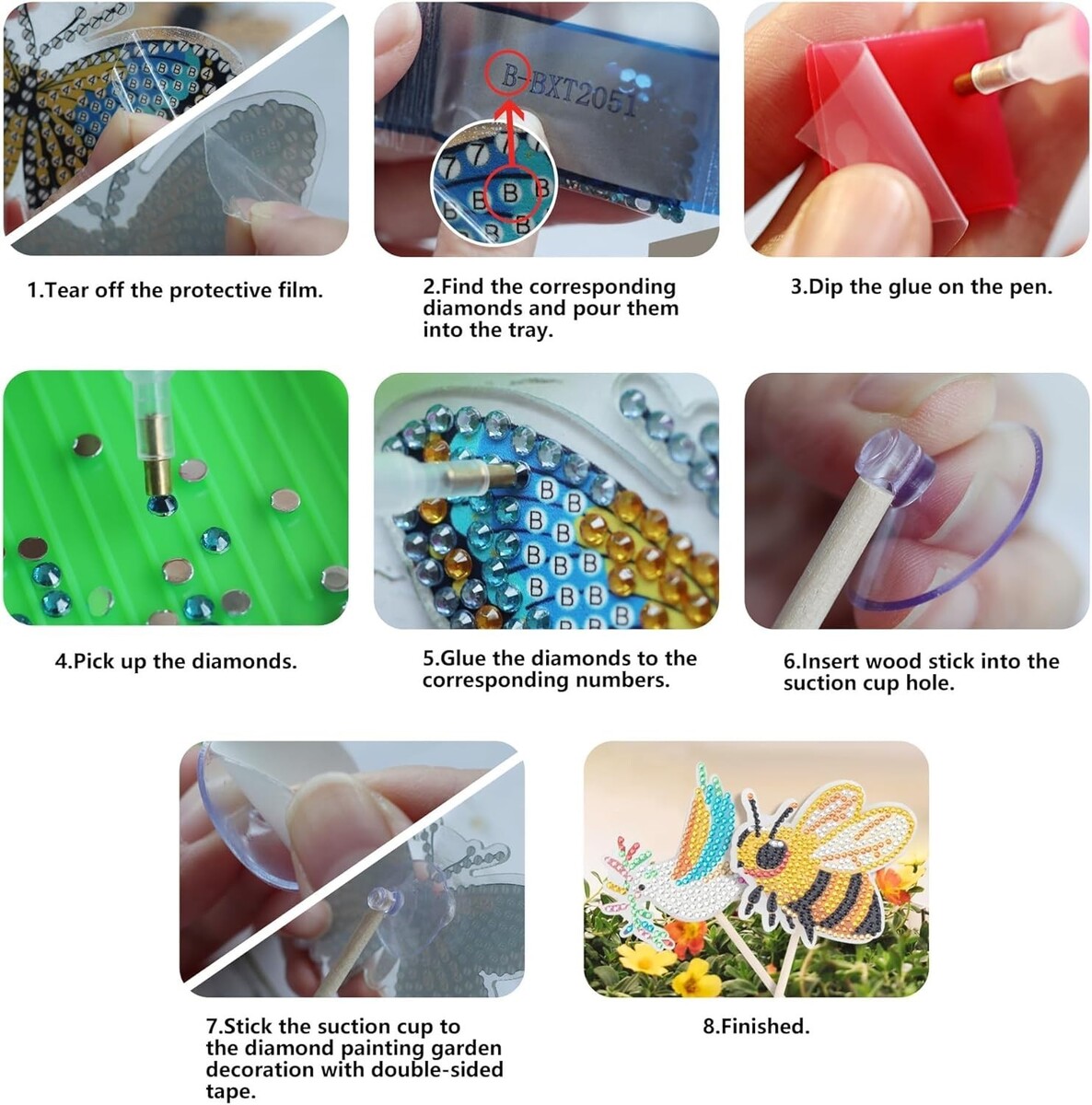 Bundled Items: Stakes Diamond Art Kit,Wood Stick,Suction Cup,Double-sided Tape,Colorful Diamond,Clay Glue,Pen,Diamond Tray
