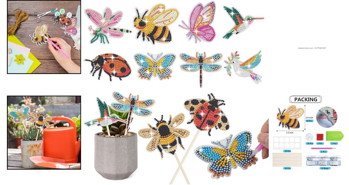 Charming 10PCS Diamond Painting Kits - Nature-Inspired Garden Ornaments for All