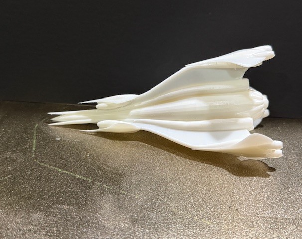 This is a 3D printed of Babylon 5 Minbari Nial Fighter from the TV series Babylon 5