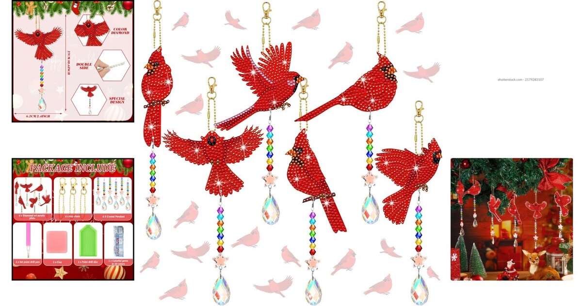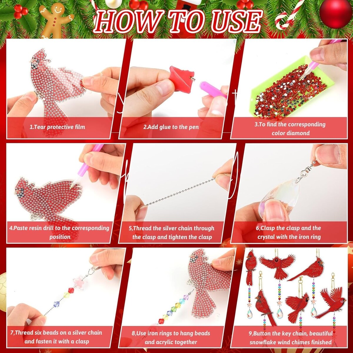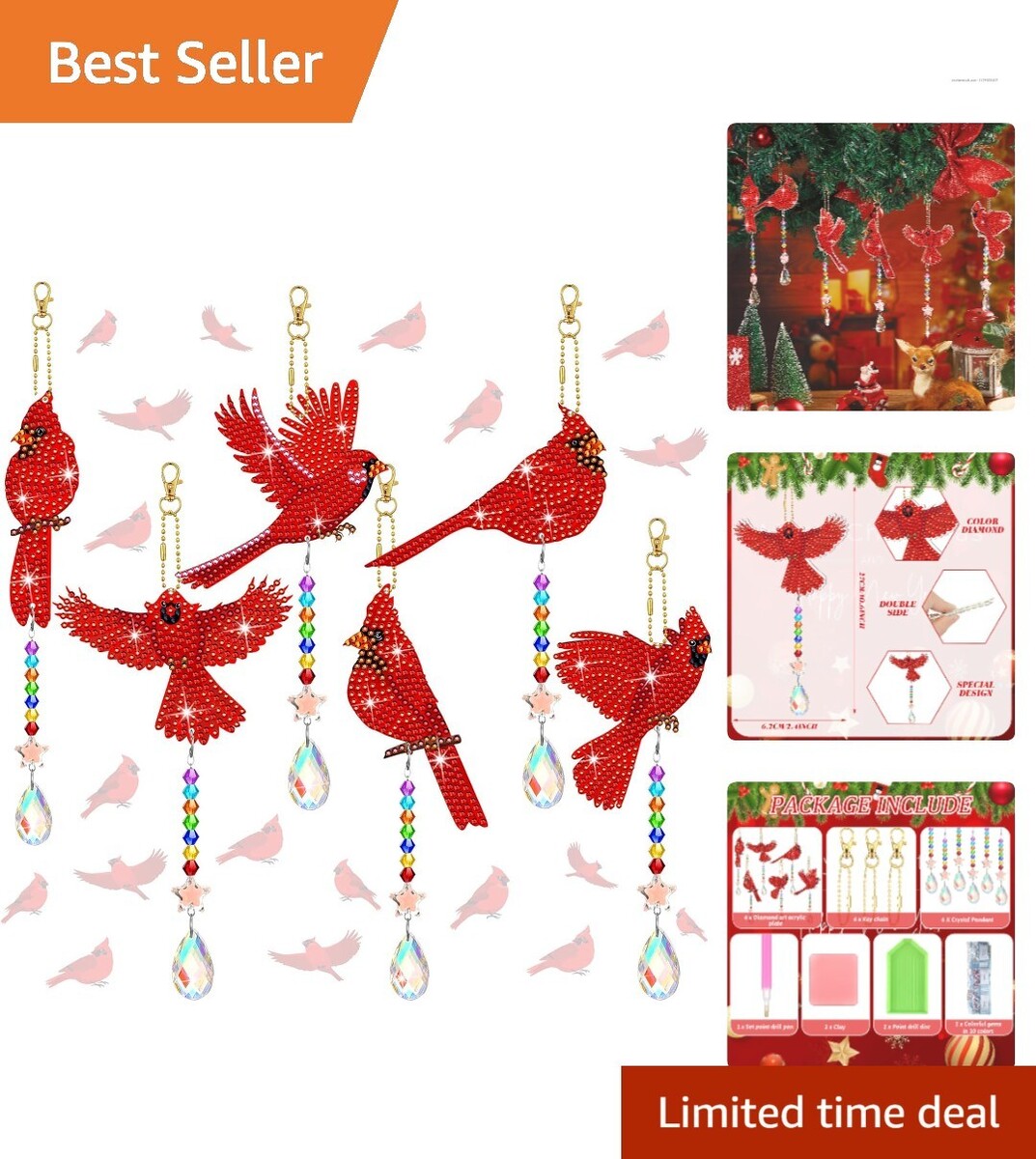 Modern Acrylic 6 Pcs Diamond Art Wind Chime Kit - Gorgeous Cardinal Designs
