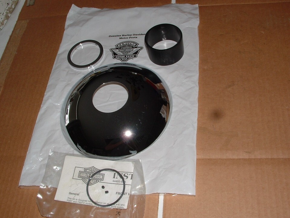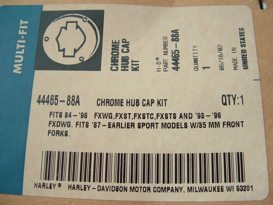 Genuine Harley Davidson Chrome hub cap kit. New in original factory package. I opened it for pictures. Check the last three pictures for part number and what models this fits. Check/verify with your dealer to be sure this will work for you. Install instructions included.