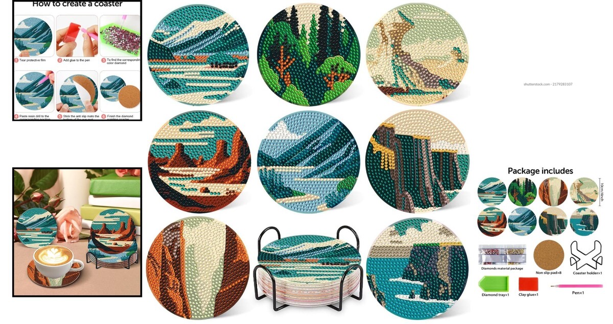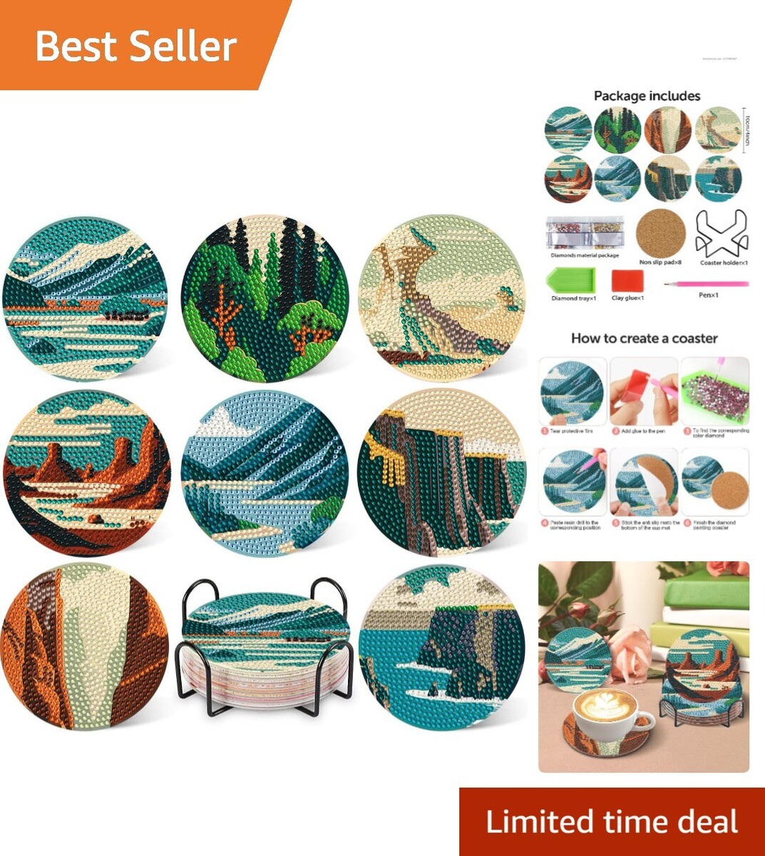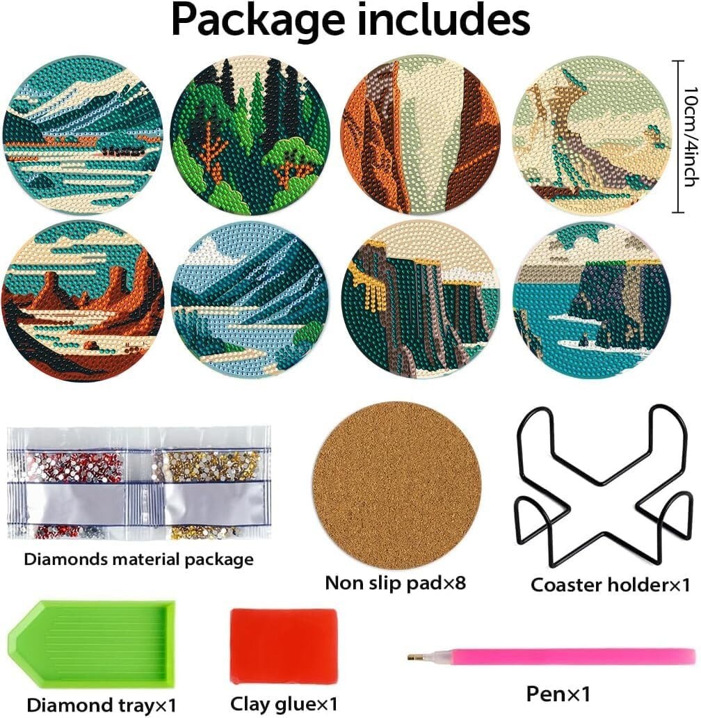 8 Pcs Diamond Art Coaster Kit for Beginners - Stunning DIY Landscape Coasters