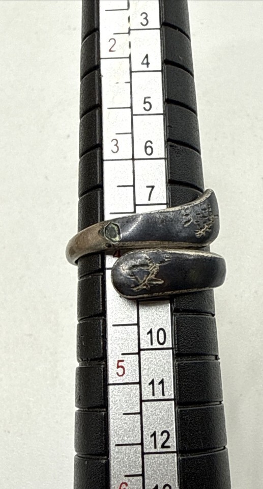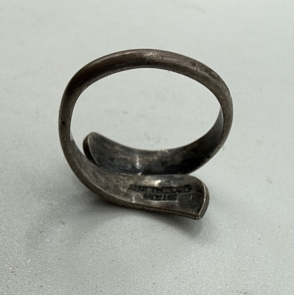Marked Siam Sterling on the ring. It?s shaped for size 4 but could be opened up a bit or made tighter as needed.