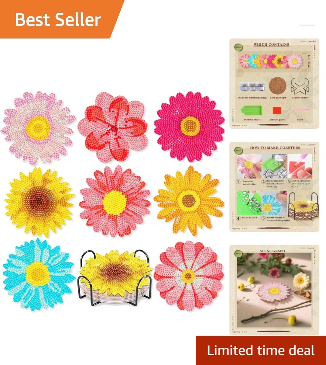 Charming 8PC Sunflower Diamond Art Coasters and similar items