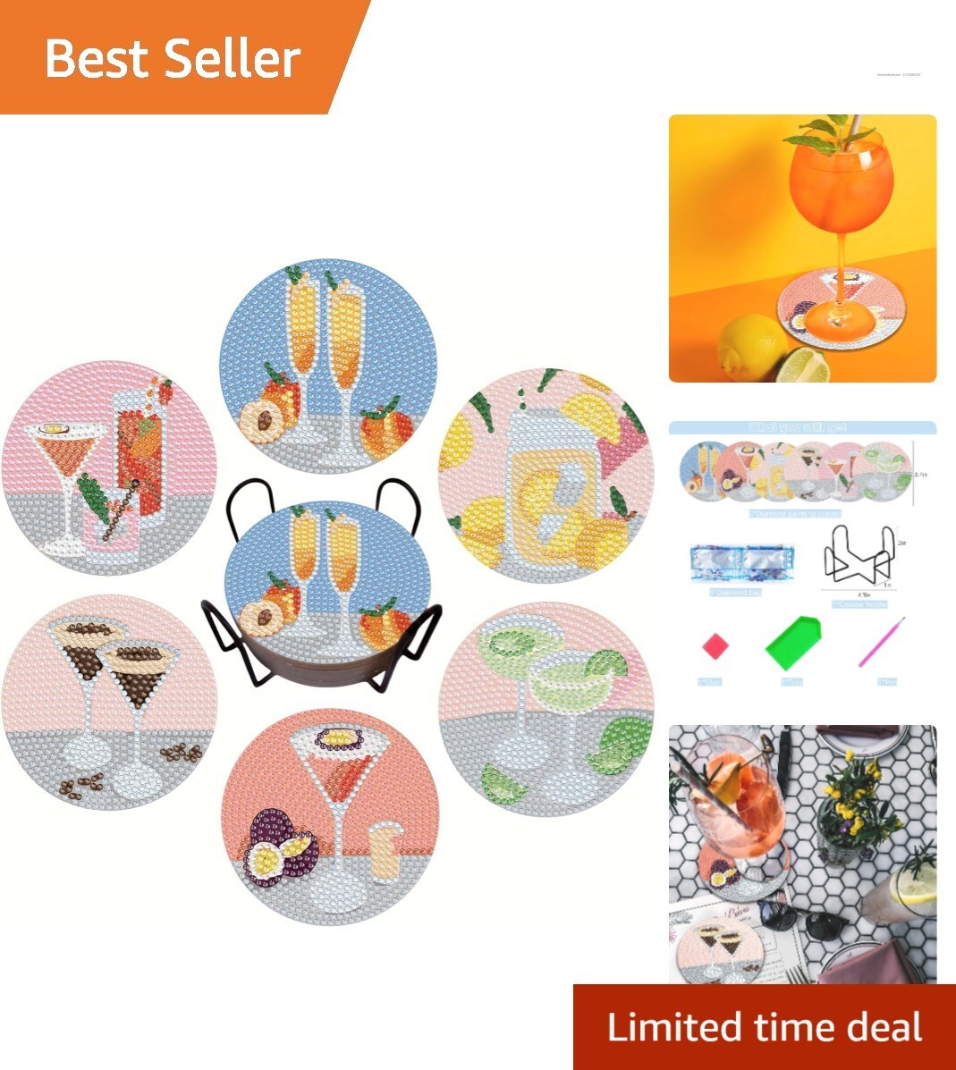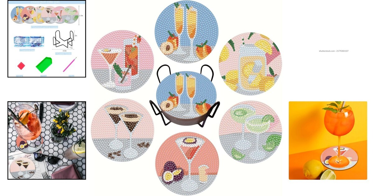 Cocktail Diamond Art Coasters Kit - Beginner-Friendly 6 Pcs Set with Tools