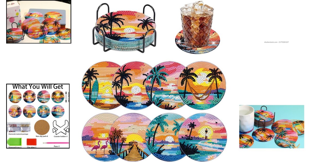 Transform your home decor while enjoying a beautiful and rewarding craft experience. Order your 8 PCS Beach Moon Diamond Art Coaster Kit today and elevate your artistic journey!