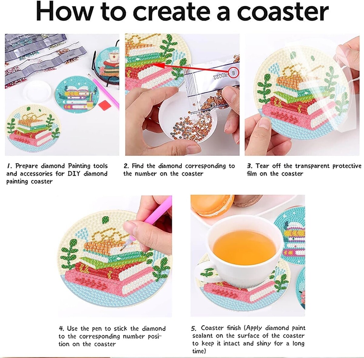 Infuse your home with personality and charm while indulging your creative side with this exquisite set of Diamond Art Coasters. Perfect for book lovers and craft enthusiasts alike, each coaster showcases unique, vibrant designs that are as practical as they are beautiful.