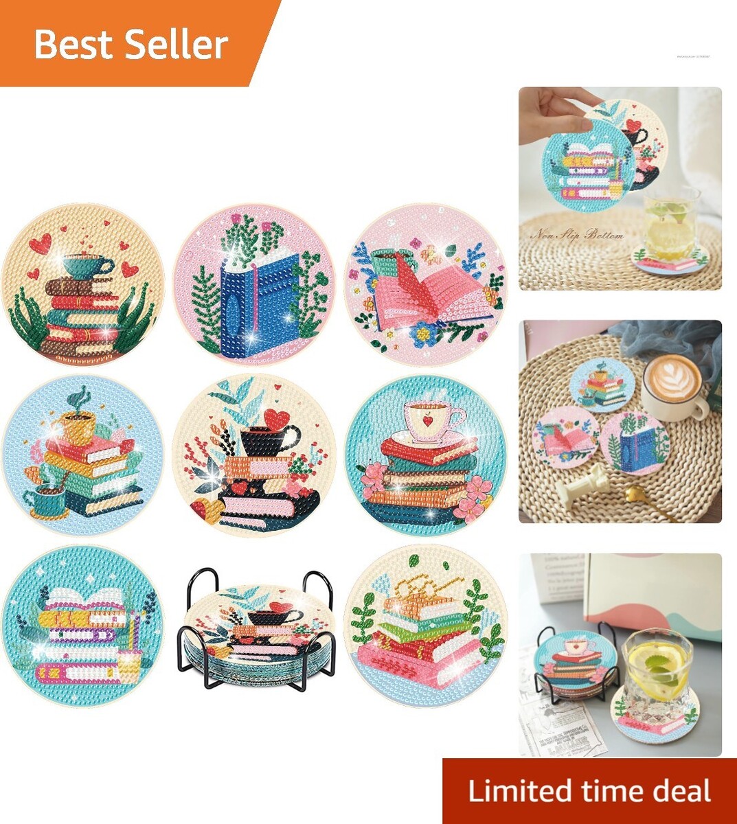 8 Colorful Book-Themed Diamond Art Coasters and similar items