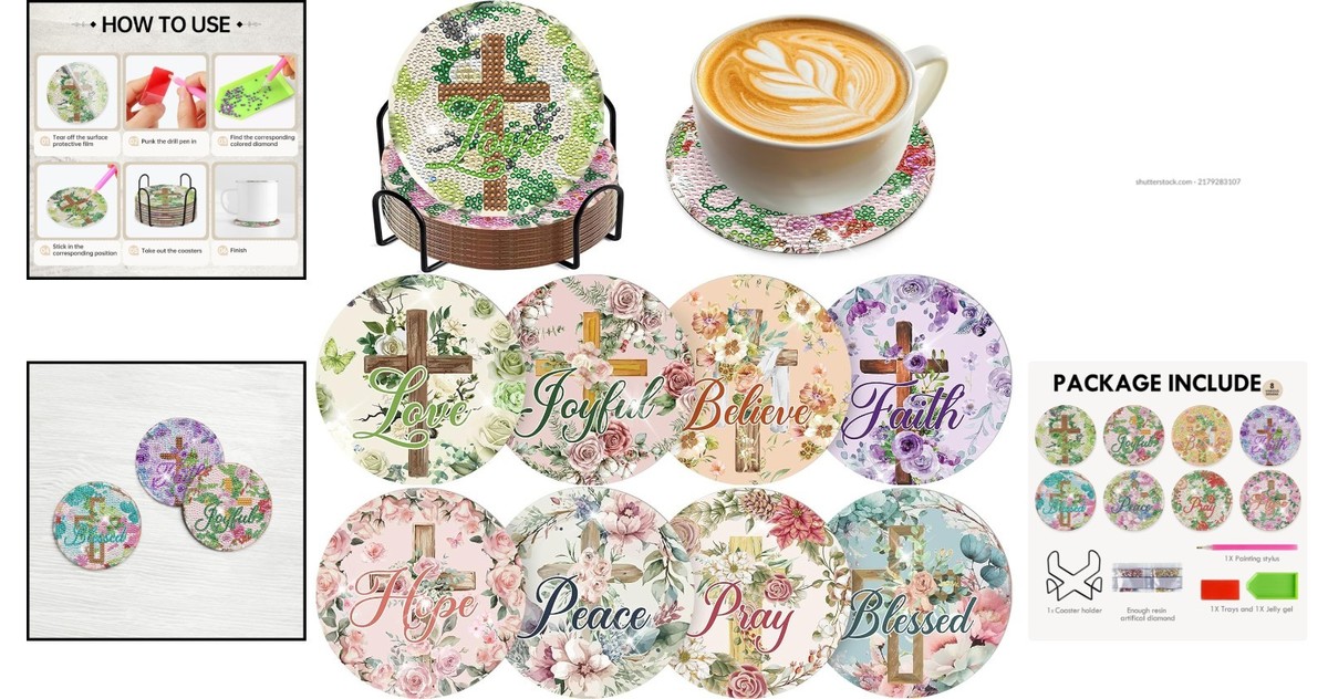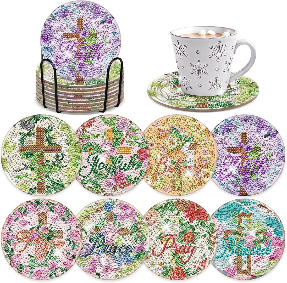 8-Piece Diamond Coaster Set with Bible Verses - Perfect for Crafting and Gifting