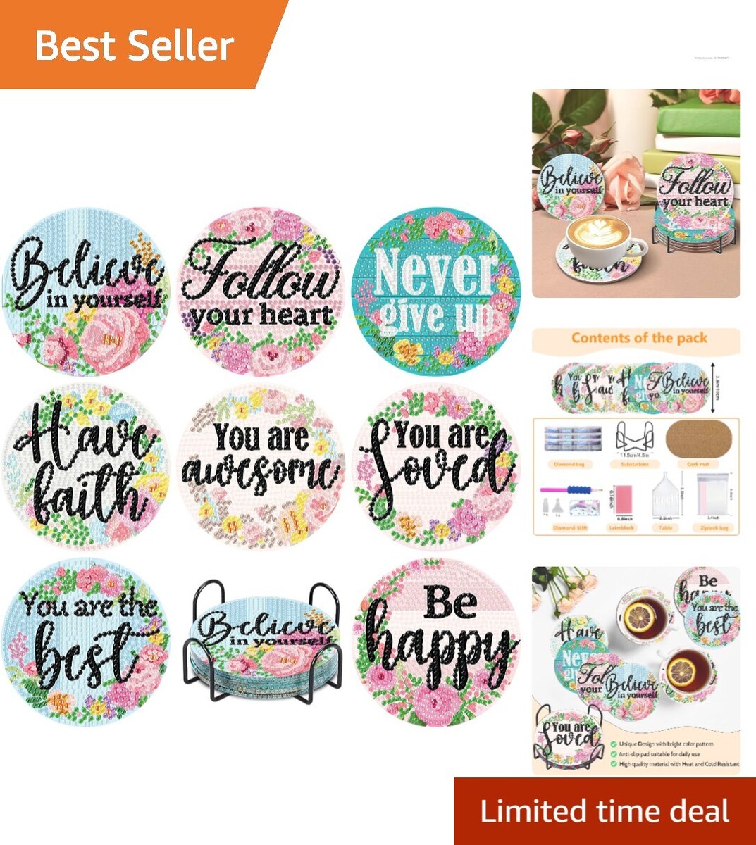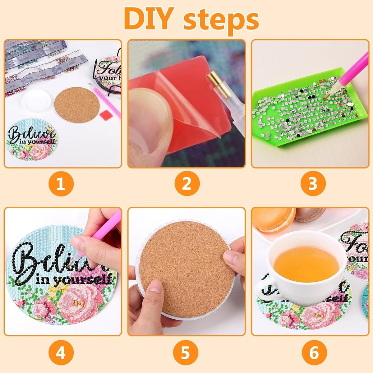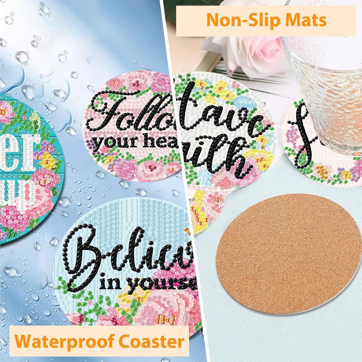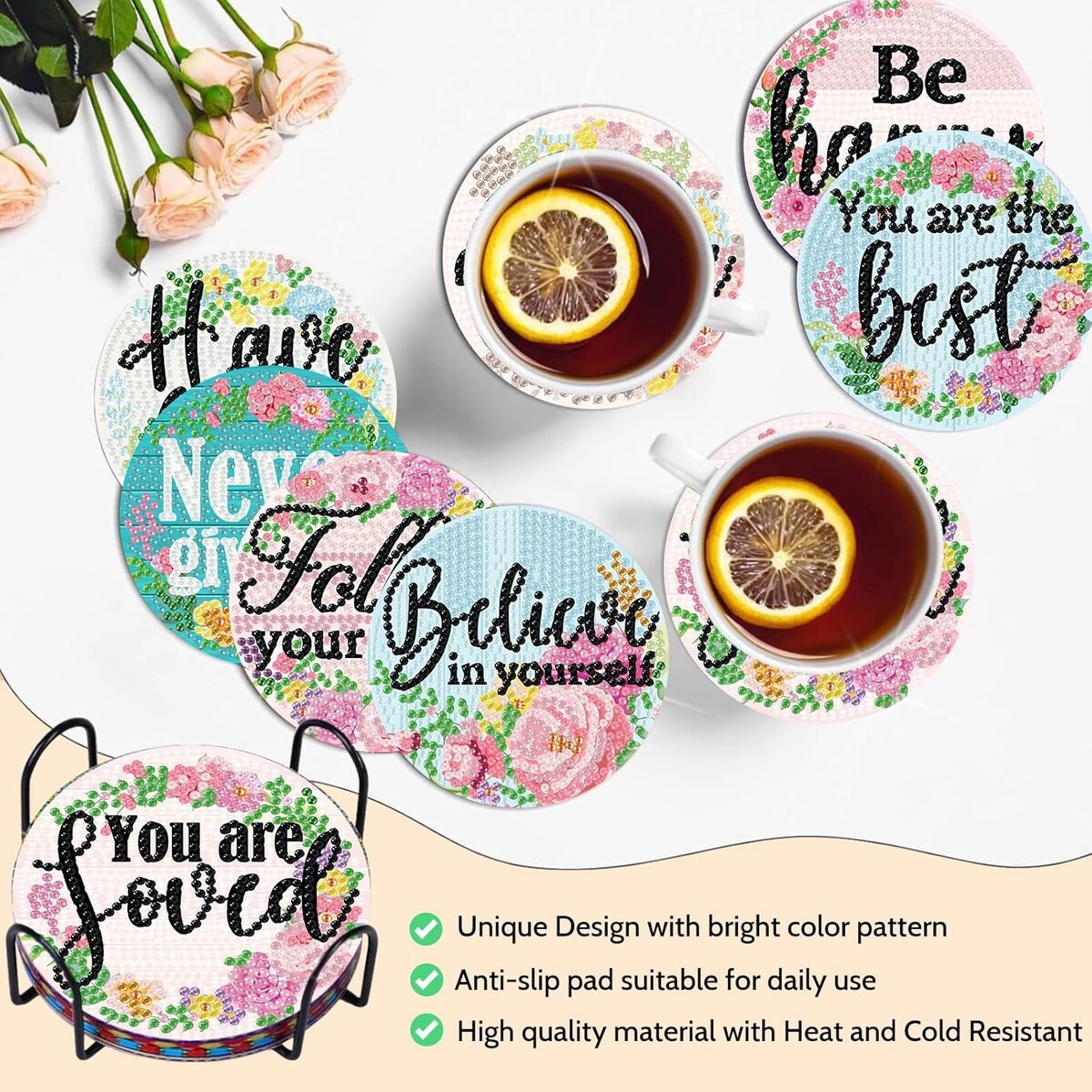 Indulge in a creative experience that adds charm and personality to your home. These coasters not only display your artistic talents but also serve practical purposes, protecting your surfaces while delighting guests with their stunning designs. A thoughtful gift choice that celebrates creativity and elegance ? what are you waiting for? Grab your Floral Diamond Art Coasters today!