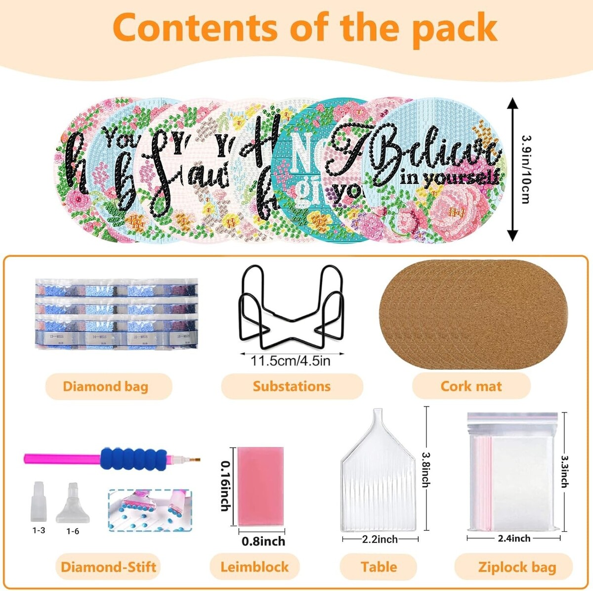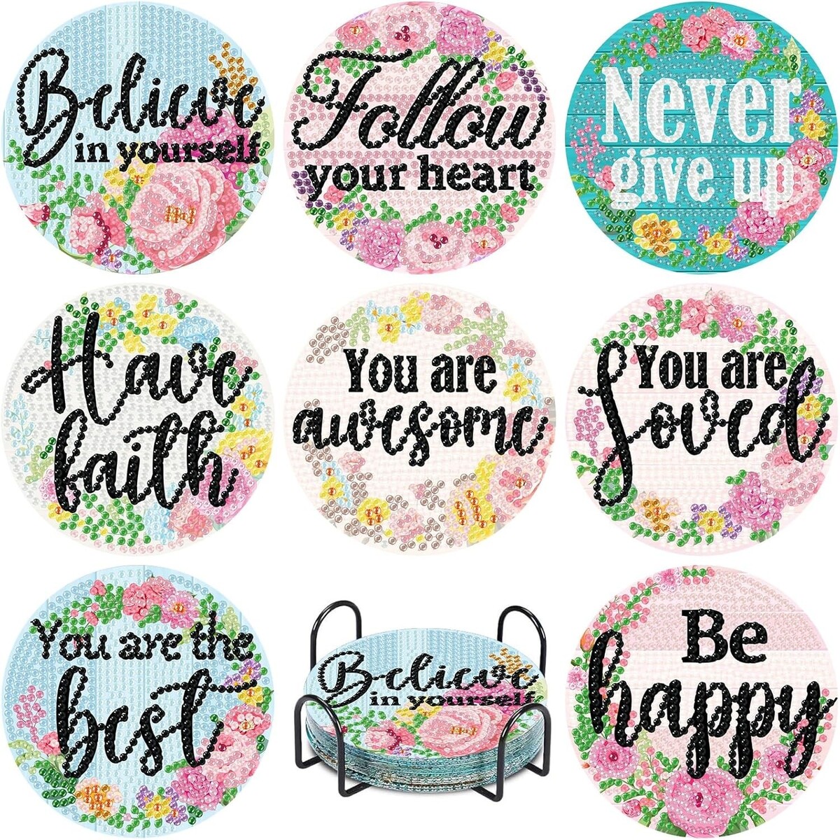 Floral Diamond Art Coasters - 8 PCS Inspirational Coaster Kit