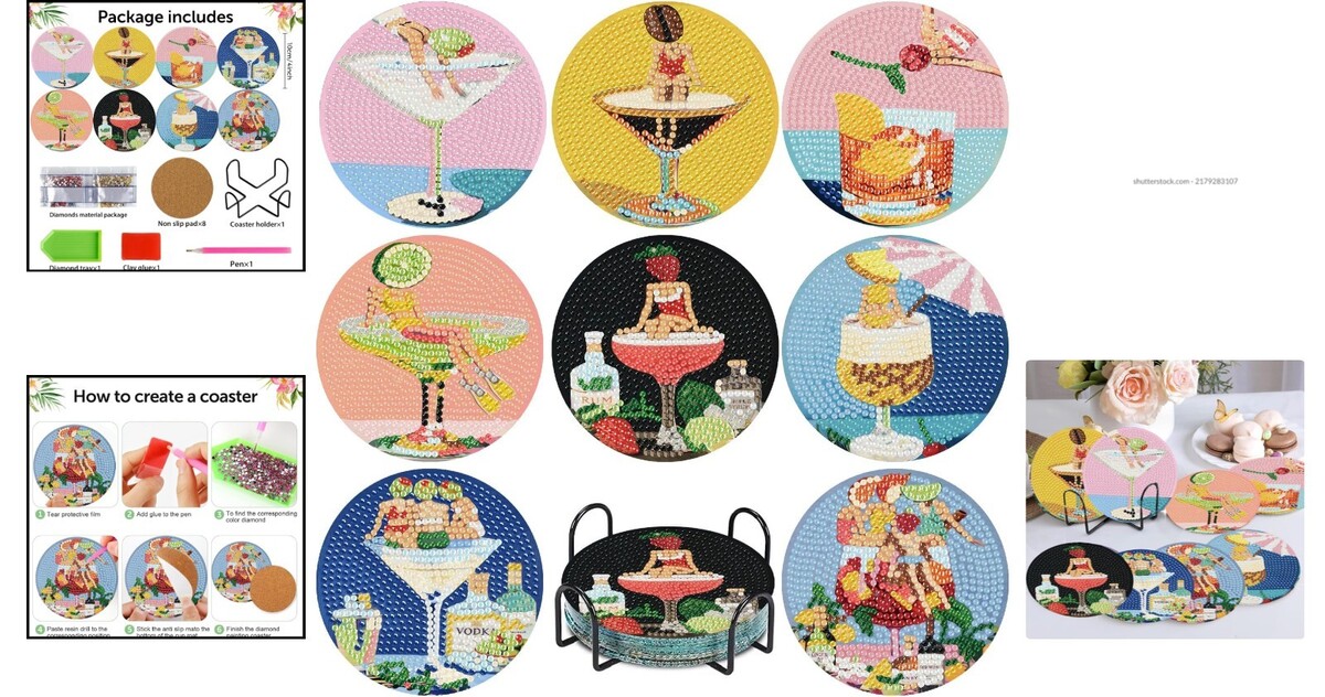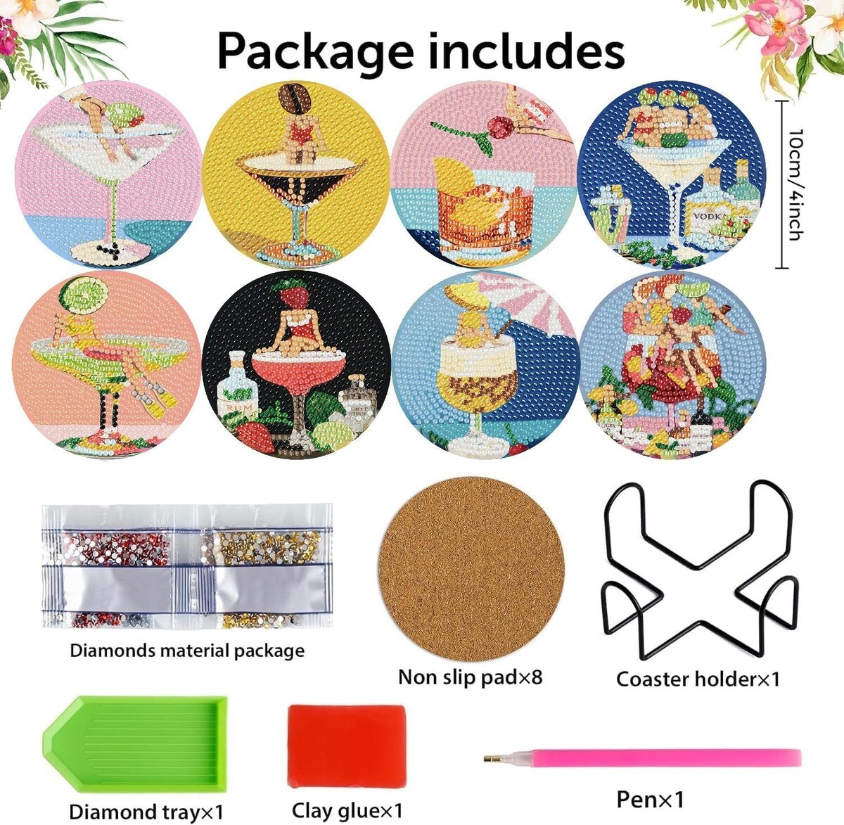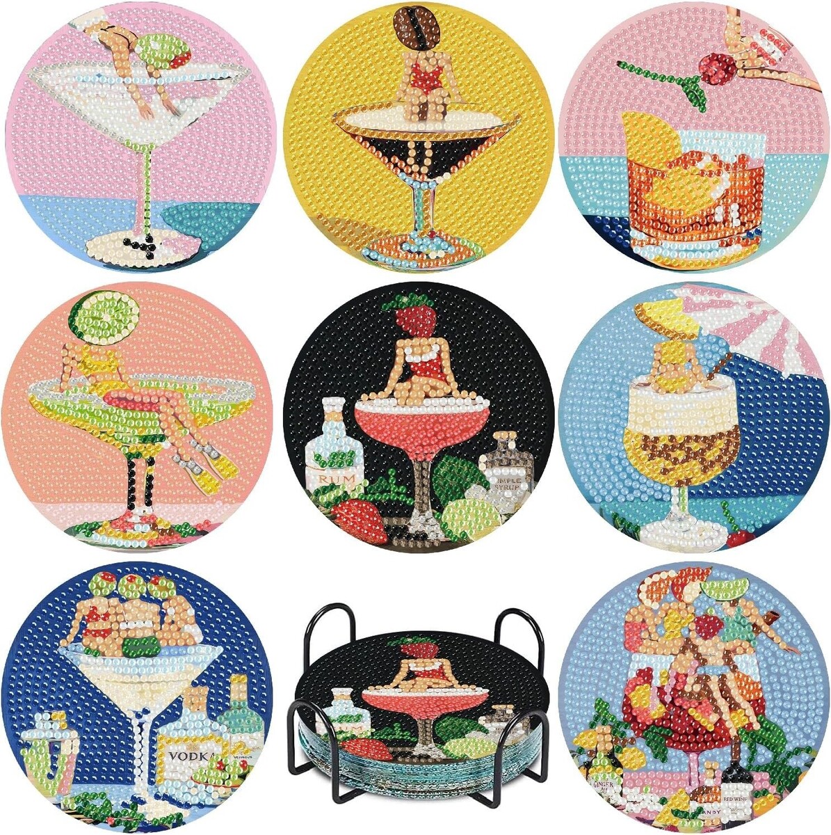8 Pcs Cocktail Diamond Painting Coasters - Perfect Gift for Art Lovers