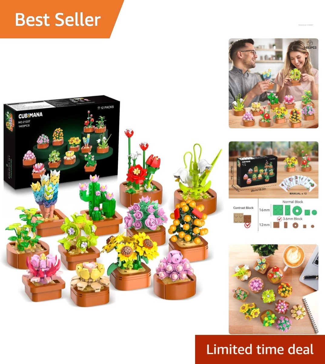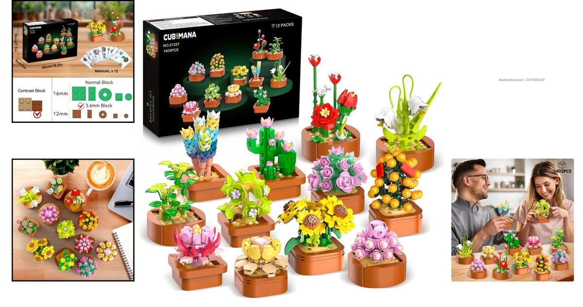 Mini Succulent Plant Blocks - 12 Pack of 3.6MM Building Bricks - Fun for All