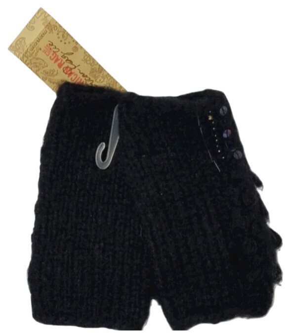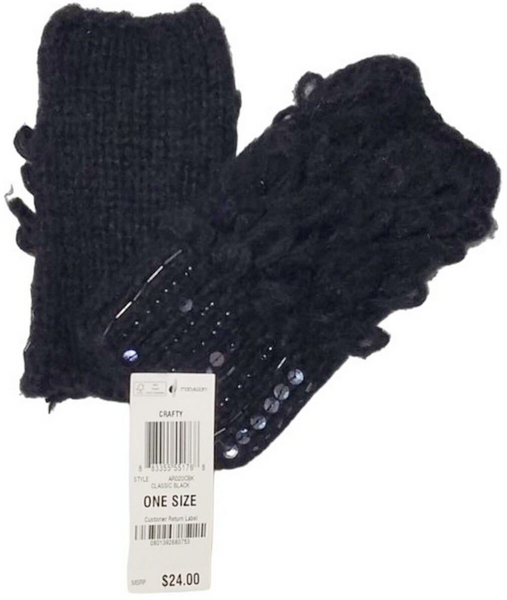 Made from 100% acrylic knit fabric, these gloves feature beaded accents and a classic black color, making them perfect for casual occasions.