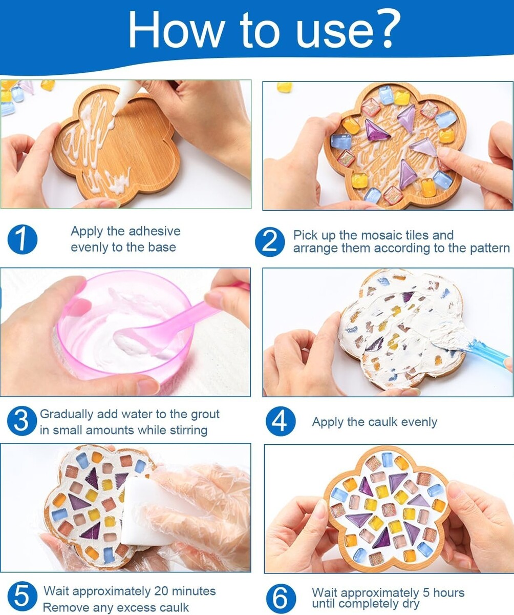 Easy Coaster Making Kit: Simple steps with glue, grout, and a wipe reveal your stunning creations. Ideal for group activities or solo relaxation.
