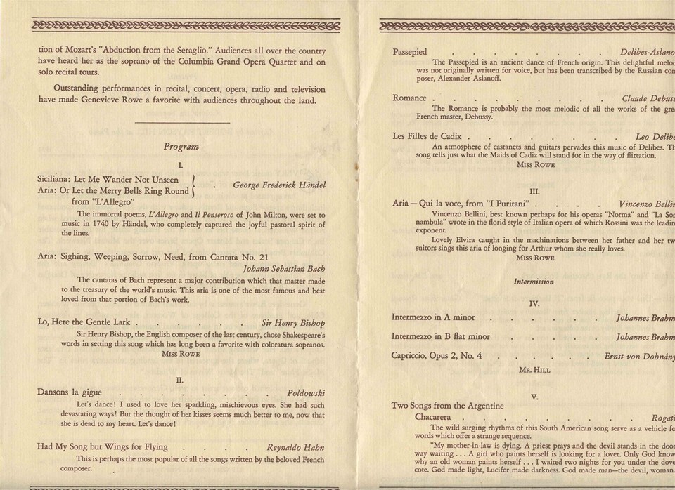 Genevieve Rowe Program Community Concert Assoc New York 1950 Coloratura Soprano