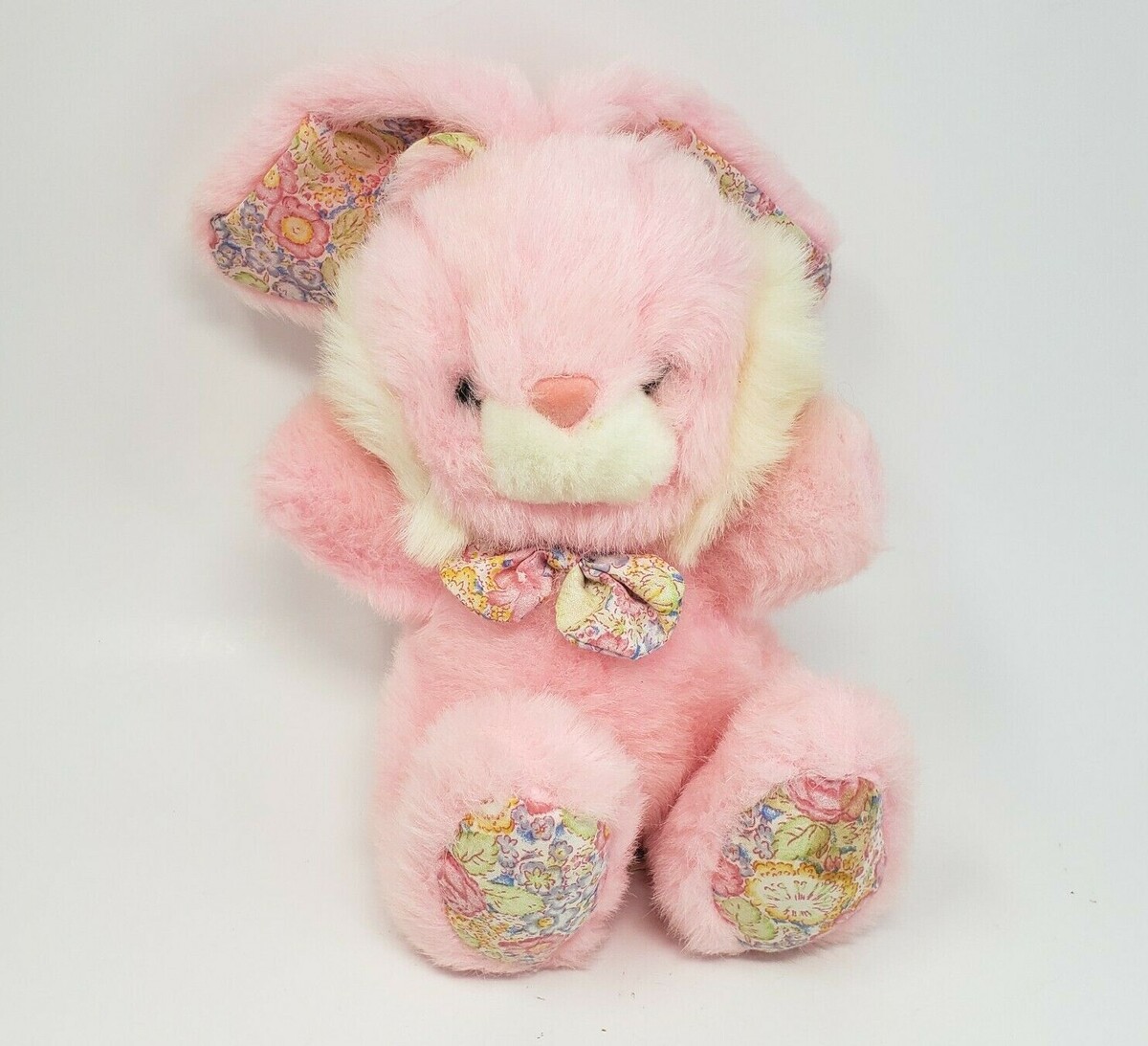 HOBBY LOBBY PINK W/ FLOWERS BUNNY RABBIT 9" VINTAGE STUFFED ANIMAL PLUSH TOY