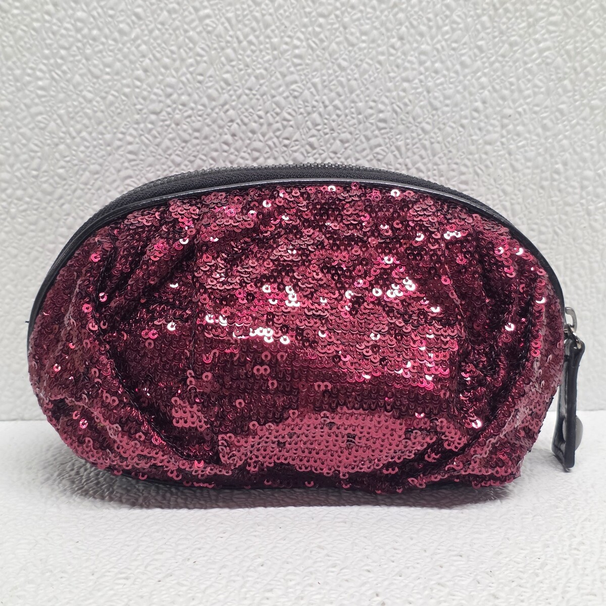 Betsy Johnson Glitzy Pink Red Sequins Cosmetic Bag Clutch Handbag. Images show actual item that will ship.