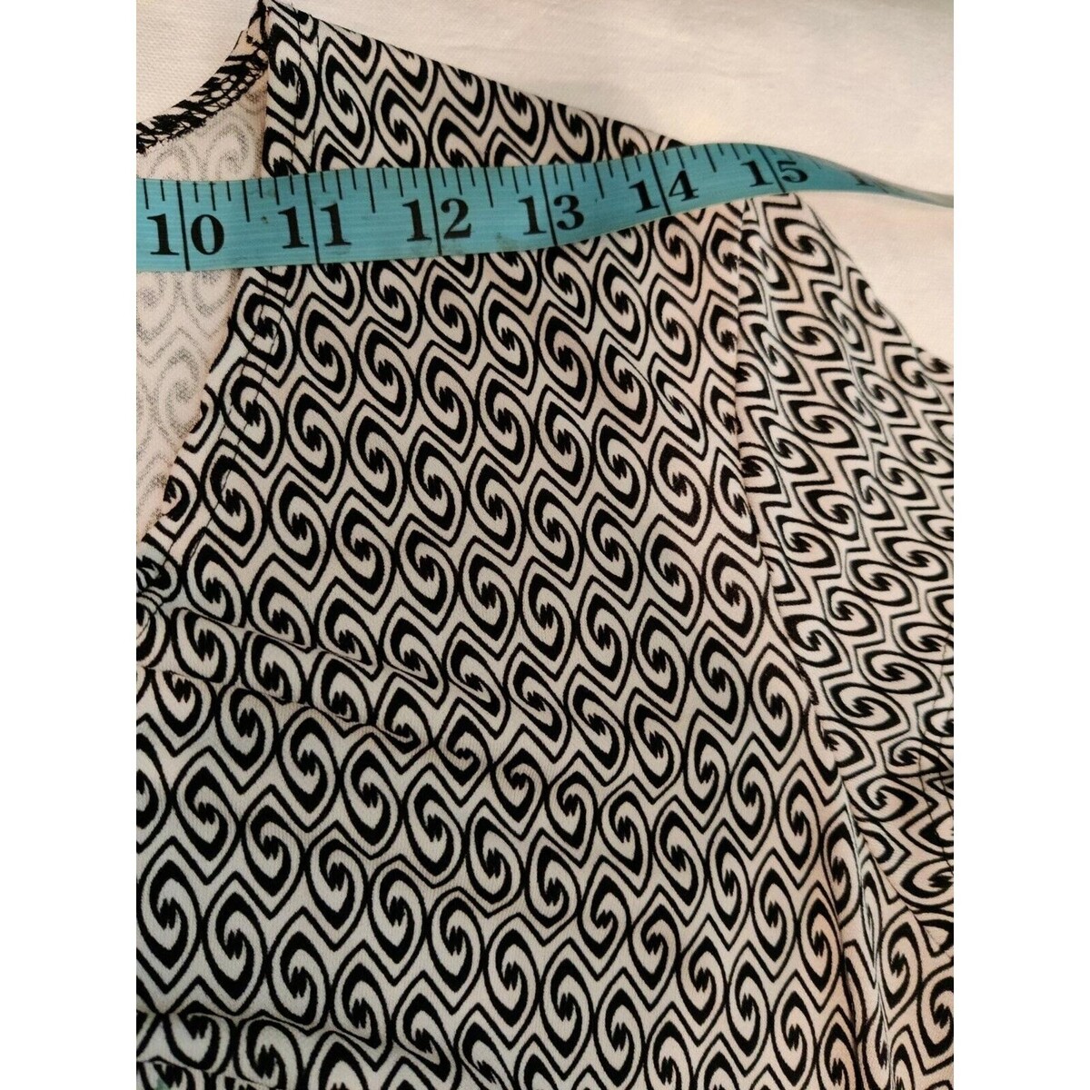 Michael Taylor Apparel Black White Geometric Print V Neck Ruched Sheath Dress L