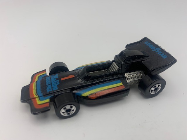 Vintage 1973 Hot Wheels Formula F1 Malibu Grand Prix #1 Real Riders Black Loose