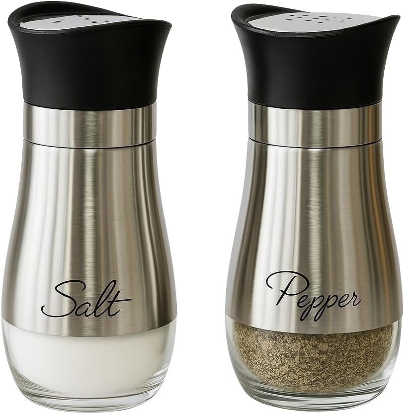his salt and pepper shaker set is designed for practical everyday use in home kitchens and dining areas. Each shaker is crafted from BPA-free glass and topped with a stainless steel perforated lid to provide controlled, even seasoning during cooking or at the table.