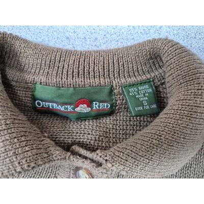 Vtg 90s Outback Red Ramie/Cotton Henley Sweater Ribbed Oversized Brown Sz S