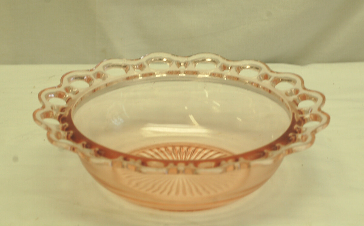 Lace Edge Pink Depression Glass Anchor Hocking Plain Round Bowl a