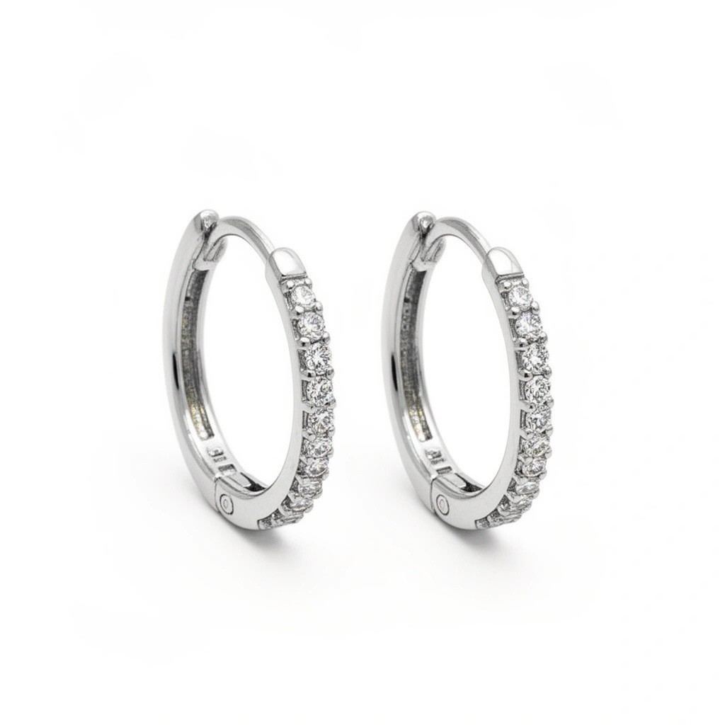 Elevate your everyday style with these stunning diamond huggie hoop earrings, designed to offer a perfect balance of classic sophistication and modern brilliance. Crafted in polished 14k white gold, these hoops provide a sleek, icy drop that enhances the natural fire of every stone. With a 16 mm diameter, these hoops sit beautifully just below the earlobe?bold enough to make a statement, yet subtle enough for professional or casual wear.