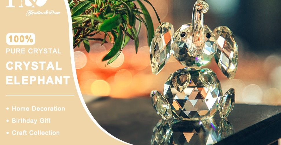 100% PURE CRYSTAL Elephant Figurine Glass Statue Animal Prism Suncatcher Gift