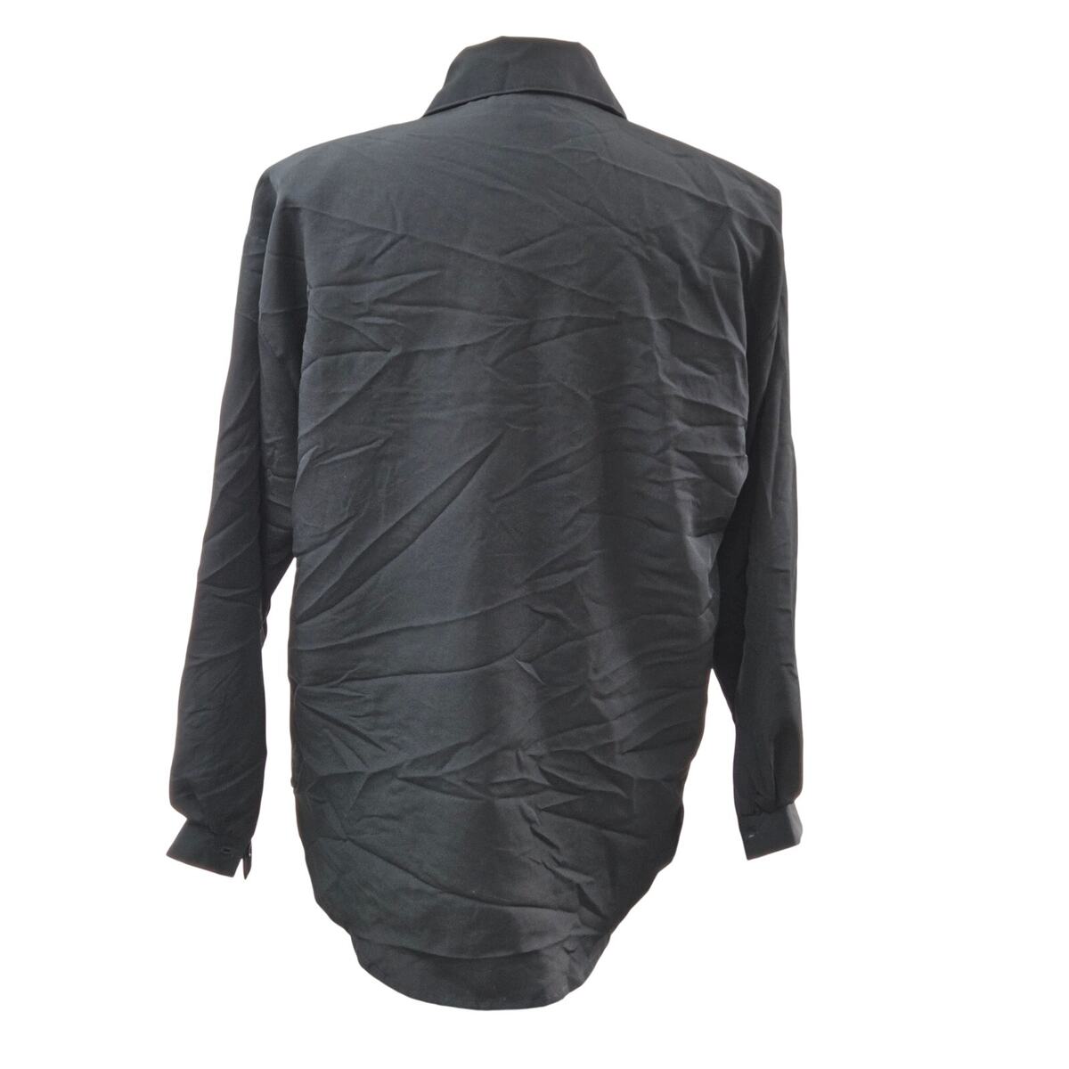 What you?ll love about this Jeri Marque metallic blouse is the classic 1980s contrast between sheer black ground and iridescent scrollwork?dramatic without being costume-y, designed to read powerful, polished, and unmistakably of its era.