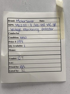 MotorSaver MS250-A 3-Phase Auto-Ranging Voltage Monitor Protector 190?480 VAC New The MotorSaver MS250-A is a three-phase auto-ranging voltage monitoring protector designed to guard 190?480 VAC, 50/60 Hz motors from harmful power line conditions. It continuously monitors voltage and phase to detect single phasing, low voltage, high voltage, phase reversal, and voltage unbalance, then deactivates its output relay when unsafe conditions occur to protect the motor. The device includes adjustable or manual restart delays and DPDT relay contacts for flexible control of shutdown and restart behavior. Listed by: Richard (Sales Team) ?The road to success has many potholes... knowing how to dodge them ahead of the collision will pave our way in reaching our journey.? R. Weckworth (A positive moment brought to you by Help Resale) About Us Welcome to Help Resale, your go-to consignment shop where value meets quality. At Help Resale, we're dedicated to providing you with an exceptional shopping experience, whether you're looking to find the best deals or consign your items. Need to buy a product, but don't see it in our store? Please feel free to reach out to us and we will help you find it! Help Resale 7200 Fair Oaks Blvd Suite 120 Carmichael CA 95608 Business Hours: Monday-Friday: 9:00 am to 5:00 pm (PST) All product and company names are trademarks TM or registered trademarks of their respective holders. Use of them does not imply any affiliation with or endorsement by them.