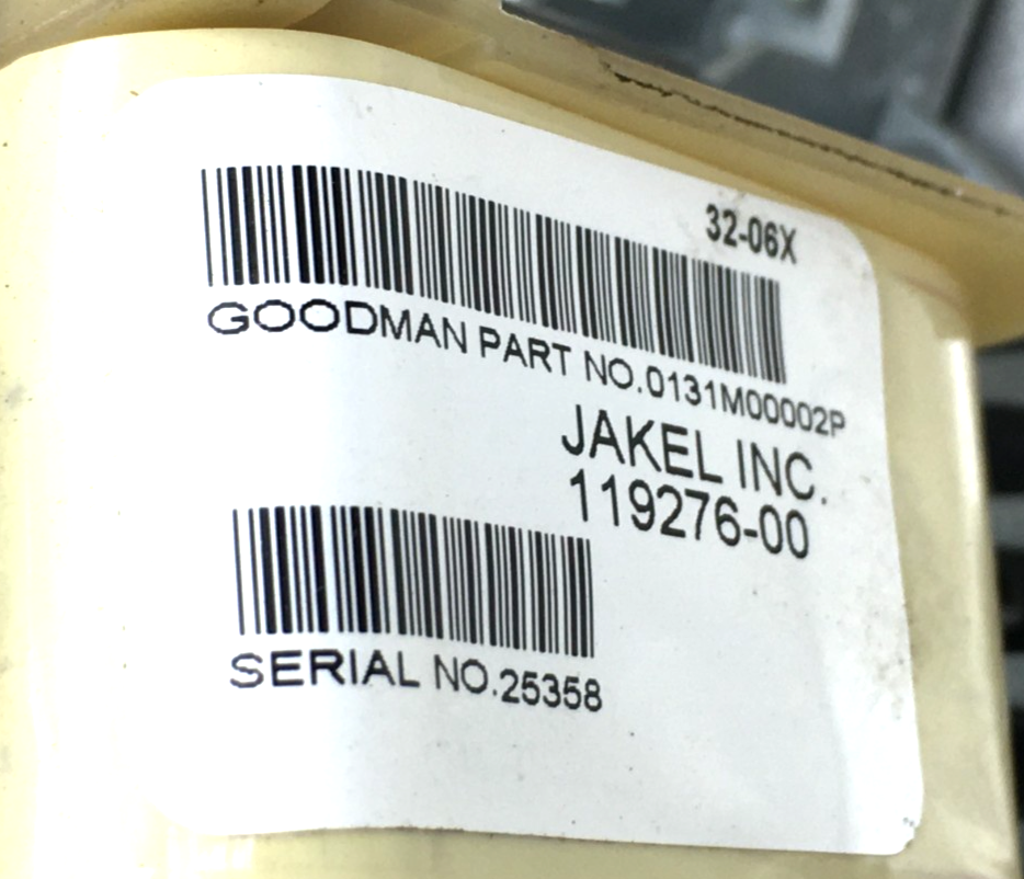 This is Jakel Goodman Inducer Motor J238-112-11258 115V 3000 RPM 119276-00 0131M00002P used part.