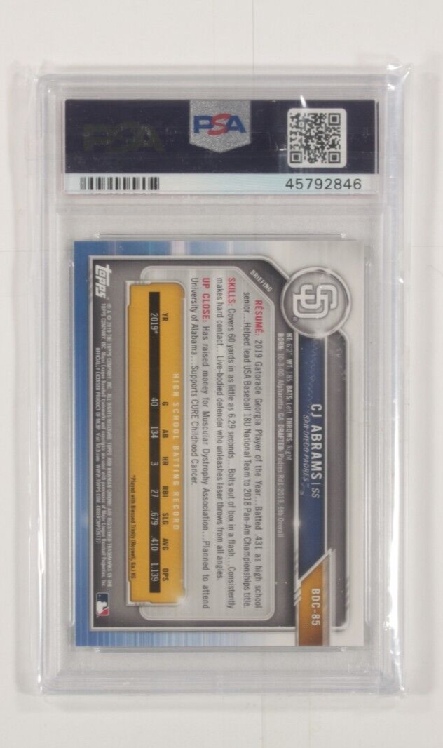 2019 Bowman Chrome Draft CJ Abrams Sapphire Edition PSA 10 Gem Mt #BDC-85
