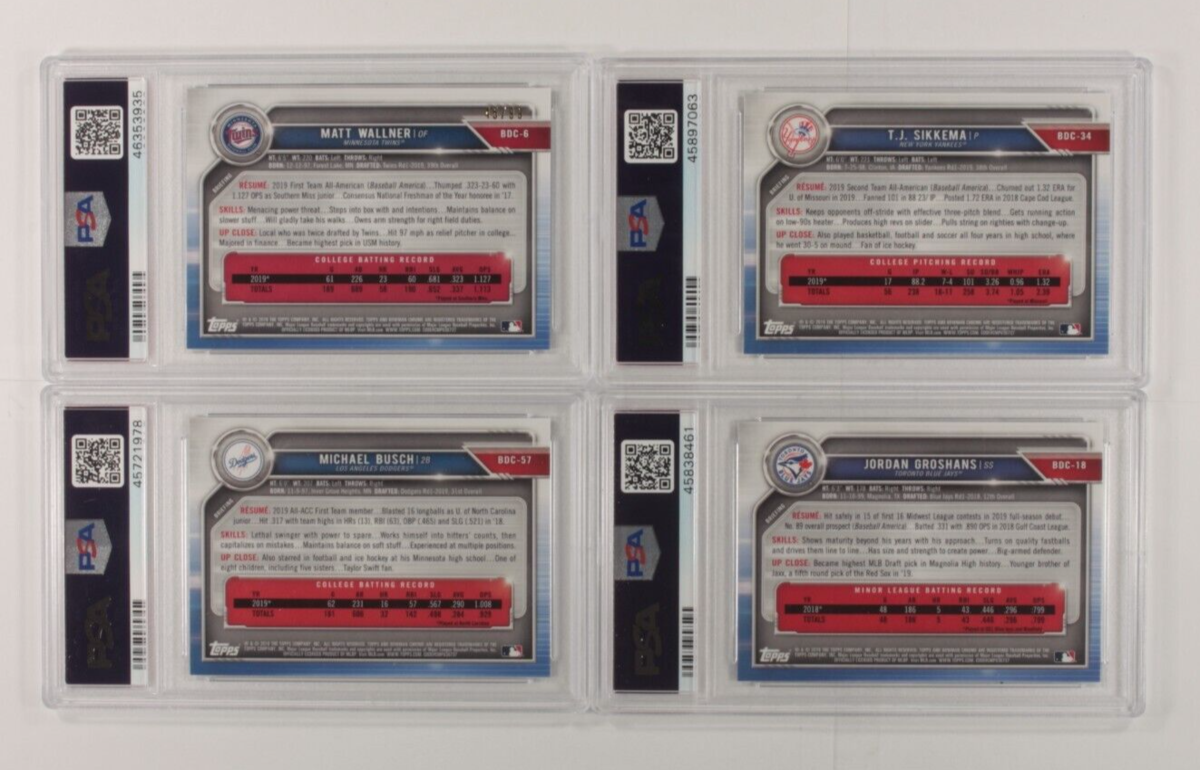 Lotto 4 PSA 10 2019 Bowman Chrome Draft Sapphire Sikkema, Busch, Groshans, Wallner