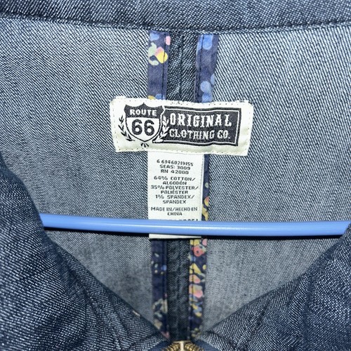 Vintage Route 66 Womens Denim Blue Jean Jacket Large Full Zip Size XL