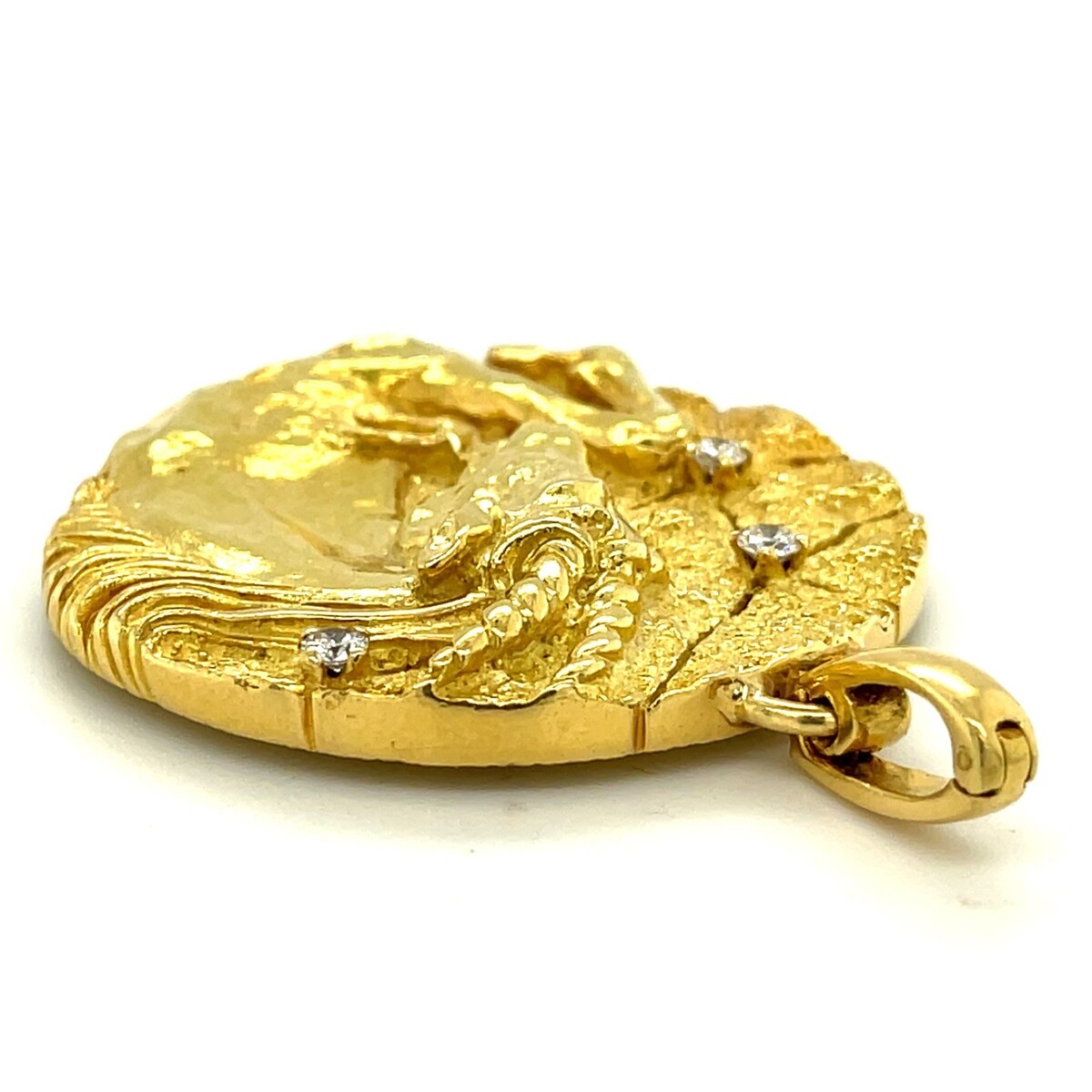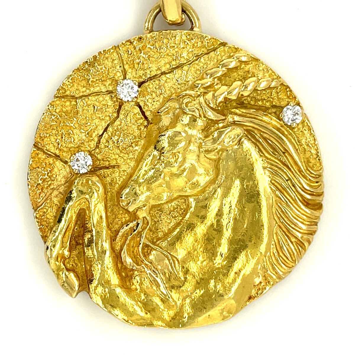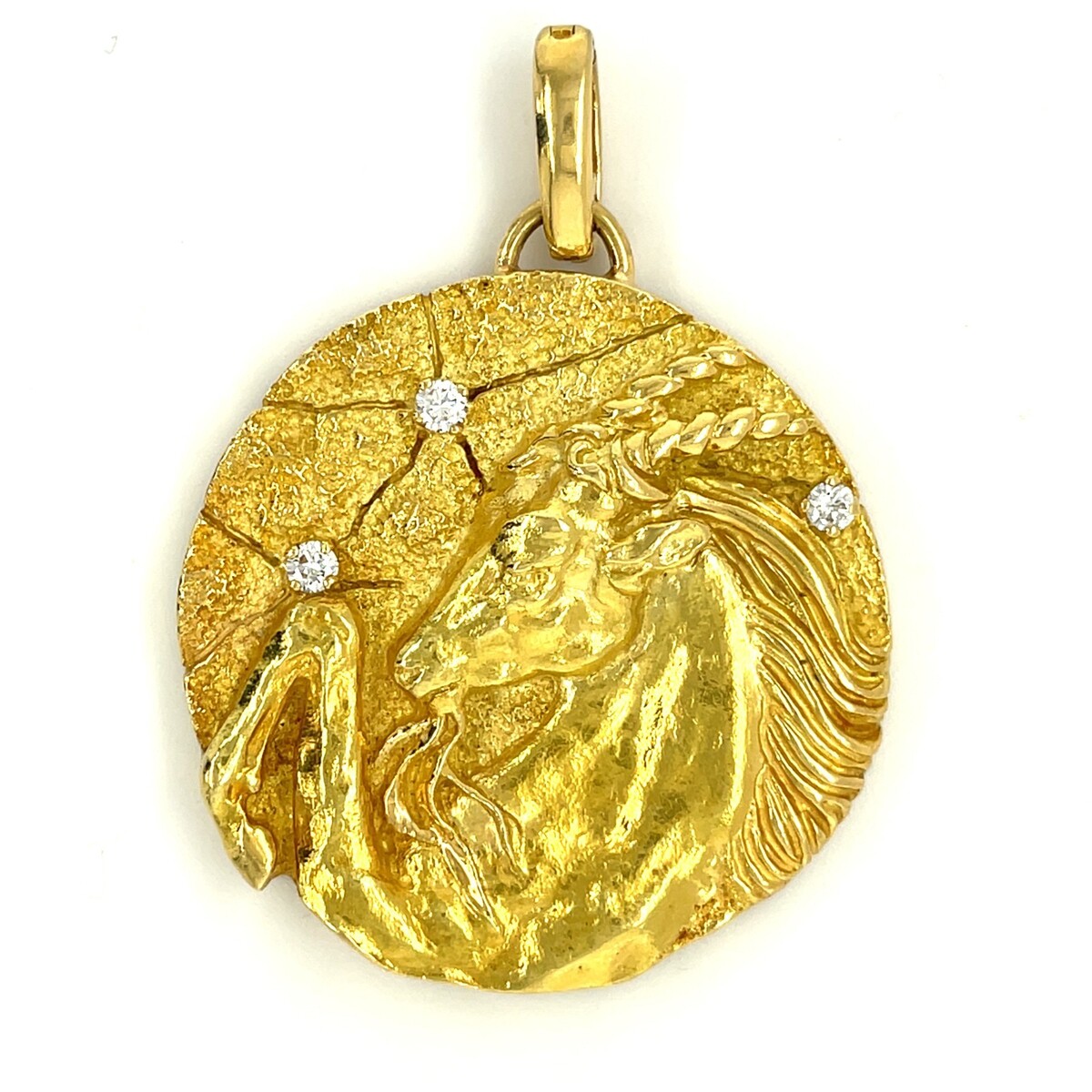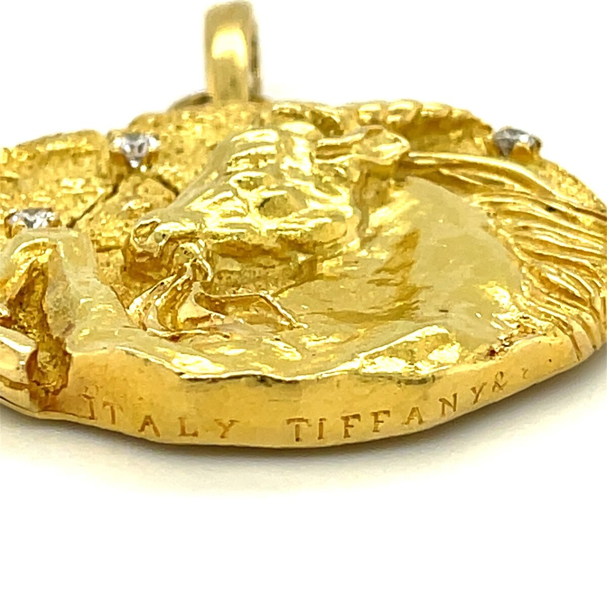 Tiffany Co. Ciondolo medaglione Capricorno in oro giallo 18 carati con diamanti 44 mm