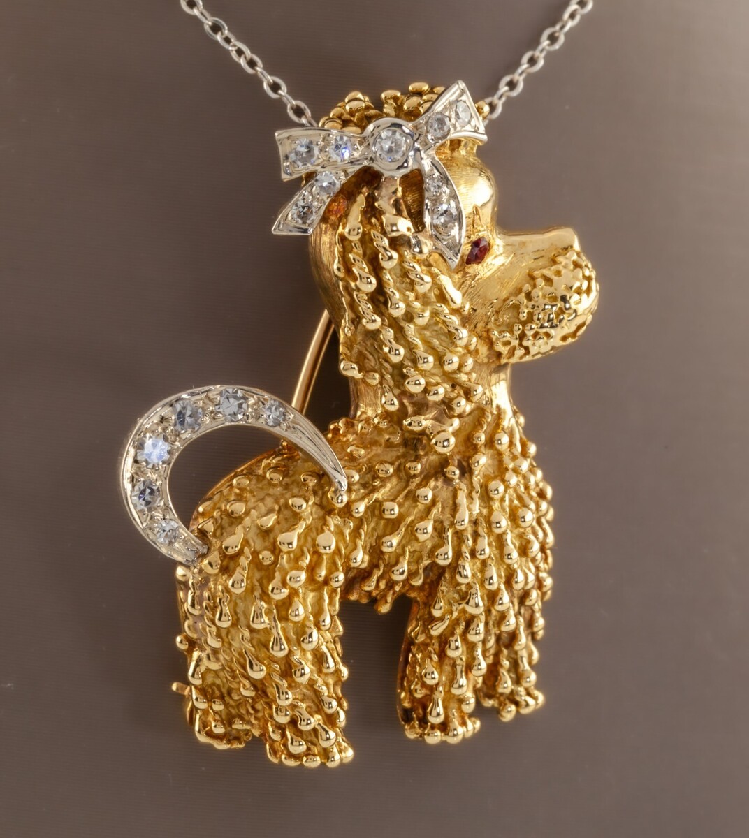 18k Gelbgold Pudel Brosche Mit Diamant Und and similar items