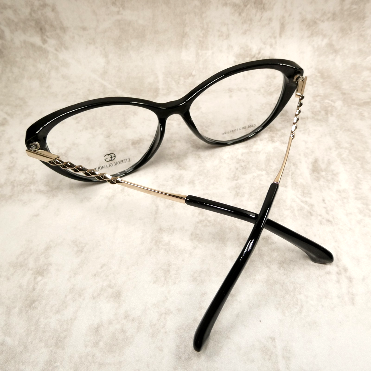 For Sale: Eternal Glamour Gloss Black Cat Eye Eyeglasses FRAMES - 0386, Size: 56-15-143 NEW!