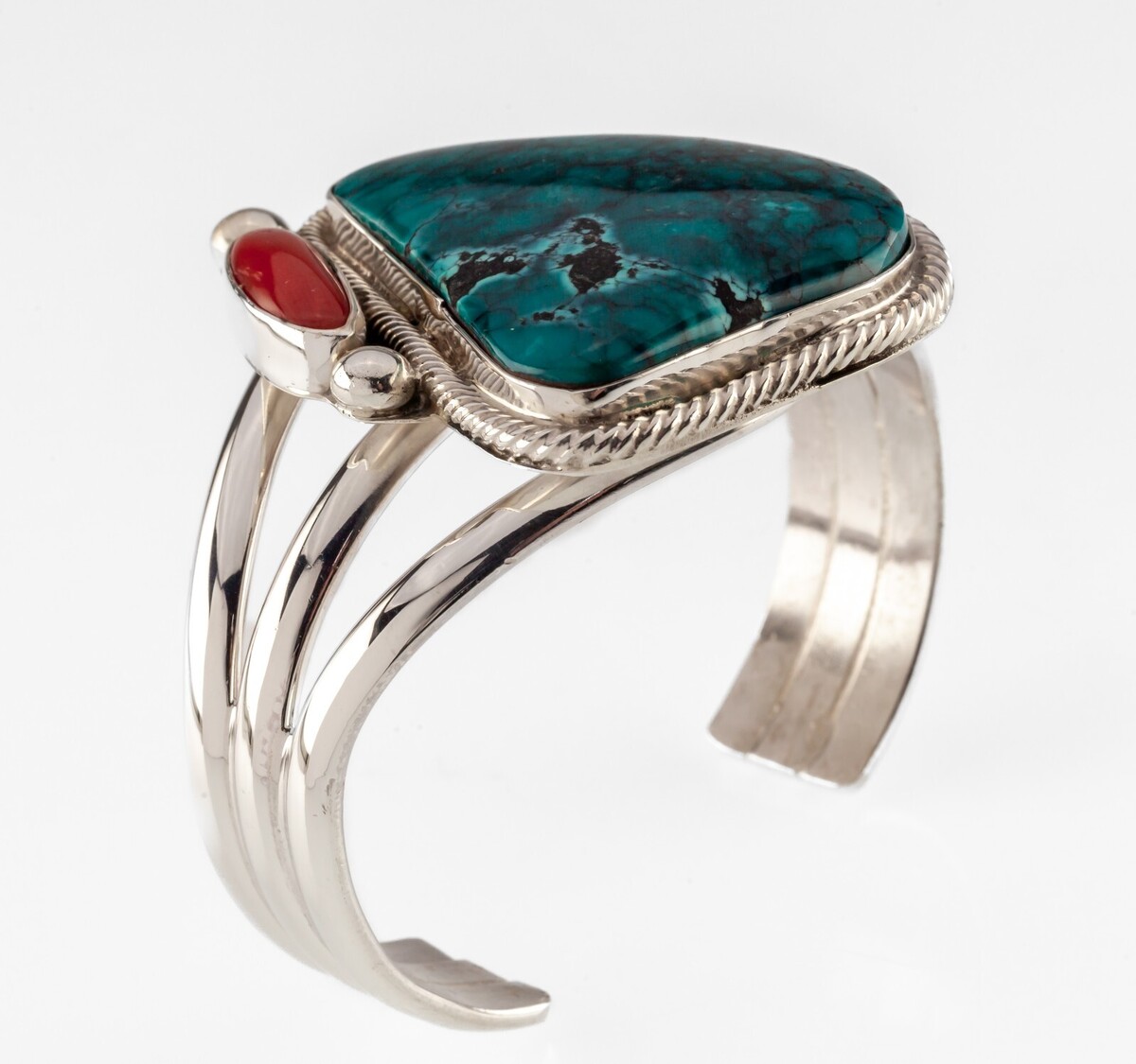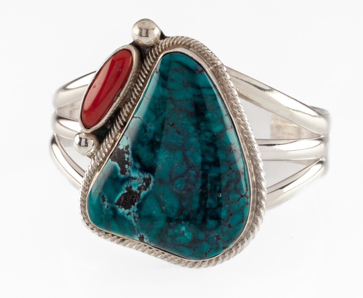 Bracciale Navajo Roy Buck con turchese e corallo rosso largo 93,8 gr
