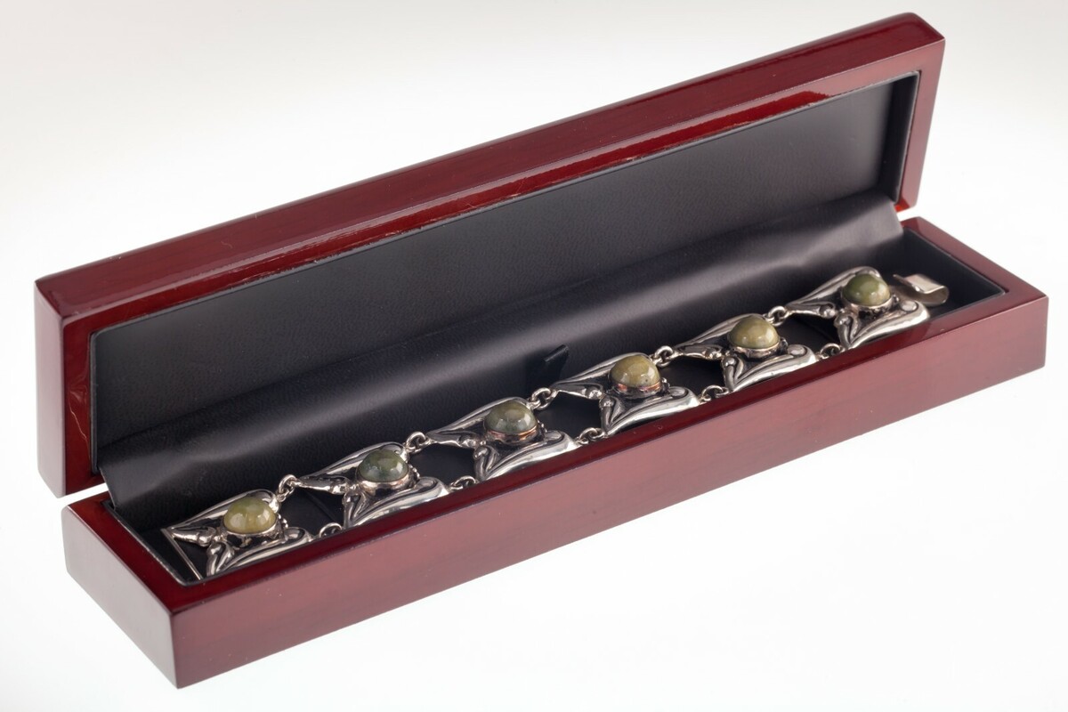 Wunderschones Armband Aus Sterlingsilber Mit Grünem Jade, Hergestellt In Mexiko