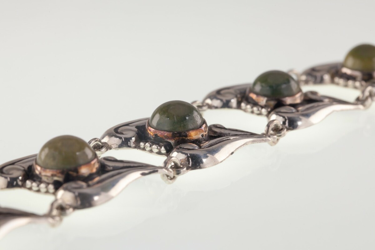 Handgefertigtes Armband mit gefassten grünen Steinen (6)