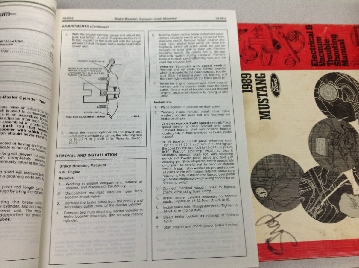 Manuale di servizio di fabbrica Ford Mustang di fabbrica del 1989, manuale degli schemi elettrici, manuali di formazione e manuale di riferimento della trasmissione