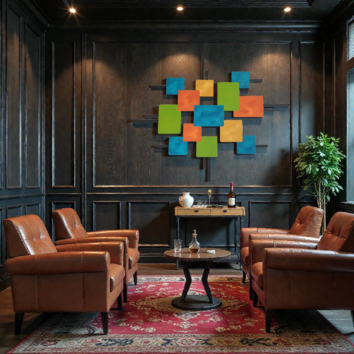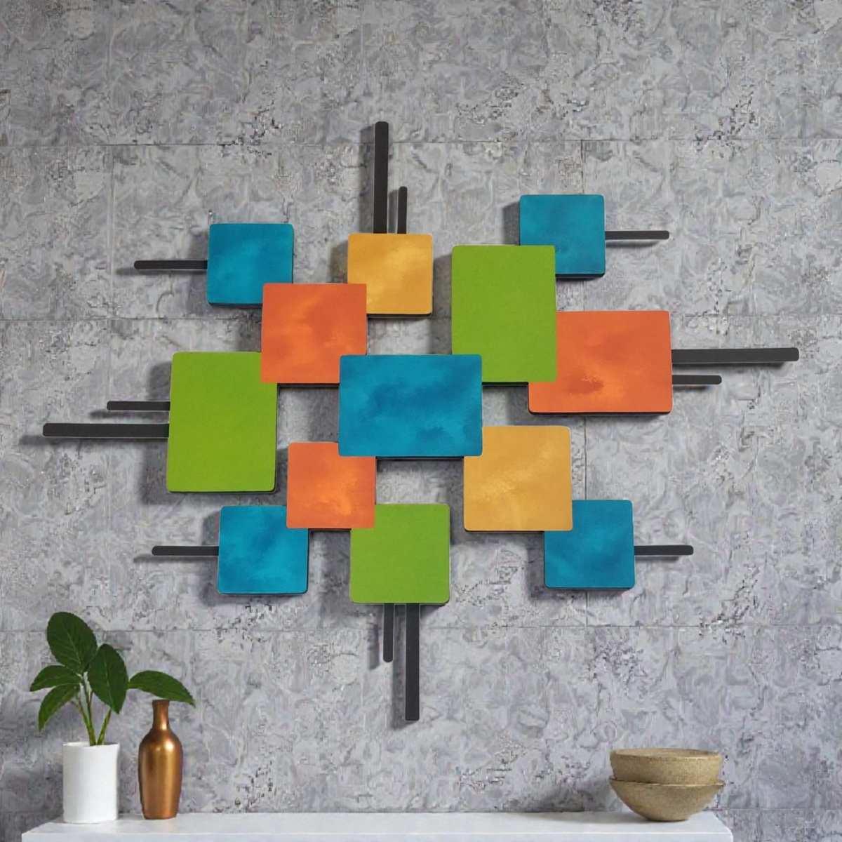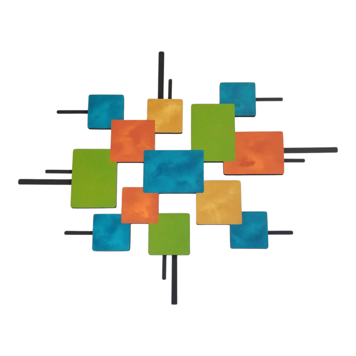 Colorful Mid-Century Modern Wood and Metal Wall Sculpture