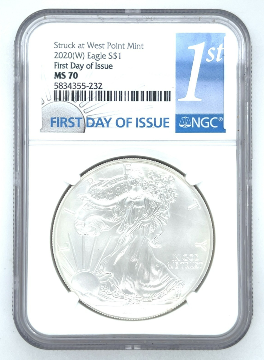 2020(W) S$1 Silver American Eagle Erster Ausgabetag NGC MS70