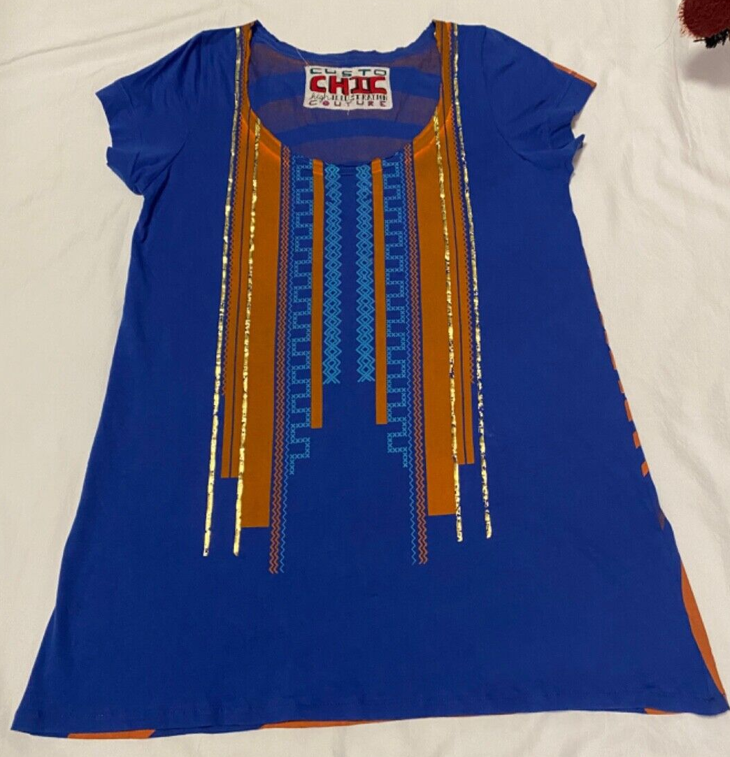 Custo Barcelona Chic High Illustration Couture Pop Art Tunic Top Blue XS NWOT