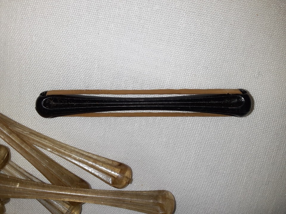 They come in various sizes and colors; yellow, red, blue, pink, black, clear, and white. Some rods use a rubber band closure, but of course the rubber is very brittle. Not all of the rods have the rubber band so you will need new rubber bands for them. Other rods have snap arm closures. Just a warning that they may be brittle so handle them carefully. Some of them have brand names on them, others do not. All items are used.