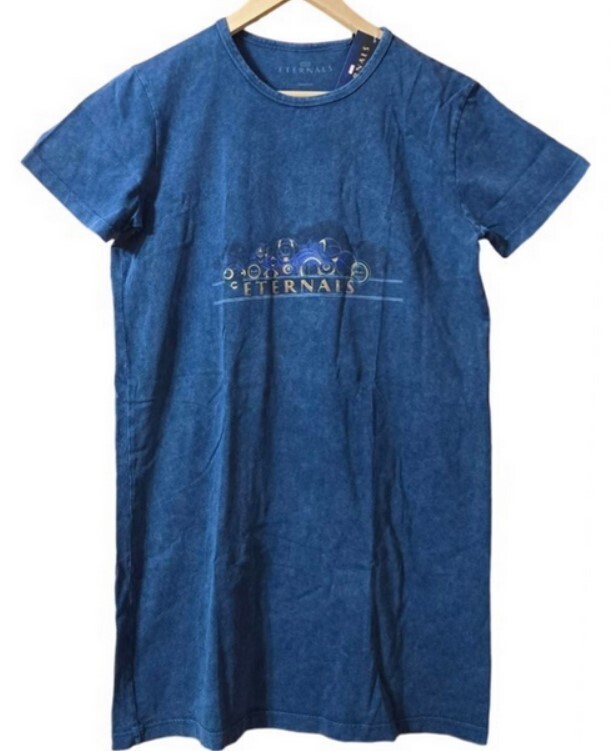 Marvel Eternals Navy Acid Wash Gold Rings Women T-Shirt Dress (Medium) NEW