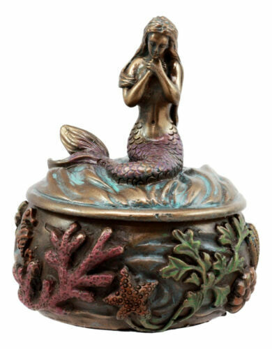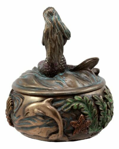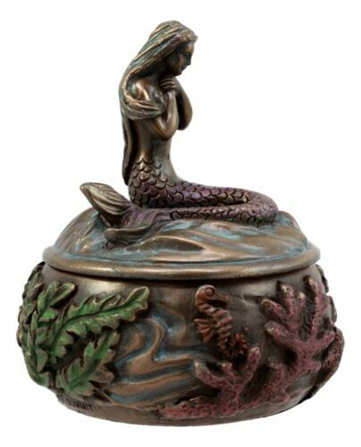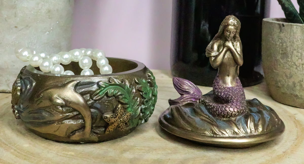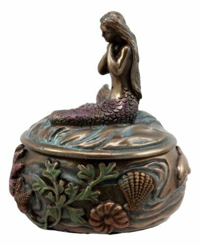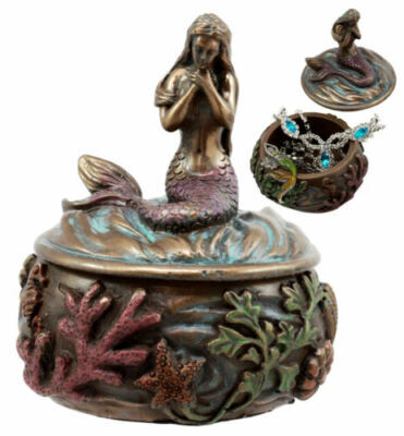 ? This beautiful mermaid jewelry box is made of polyresin, hand painted and polished.