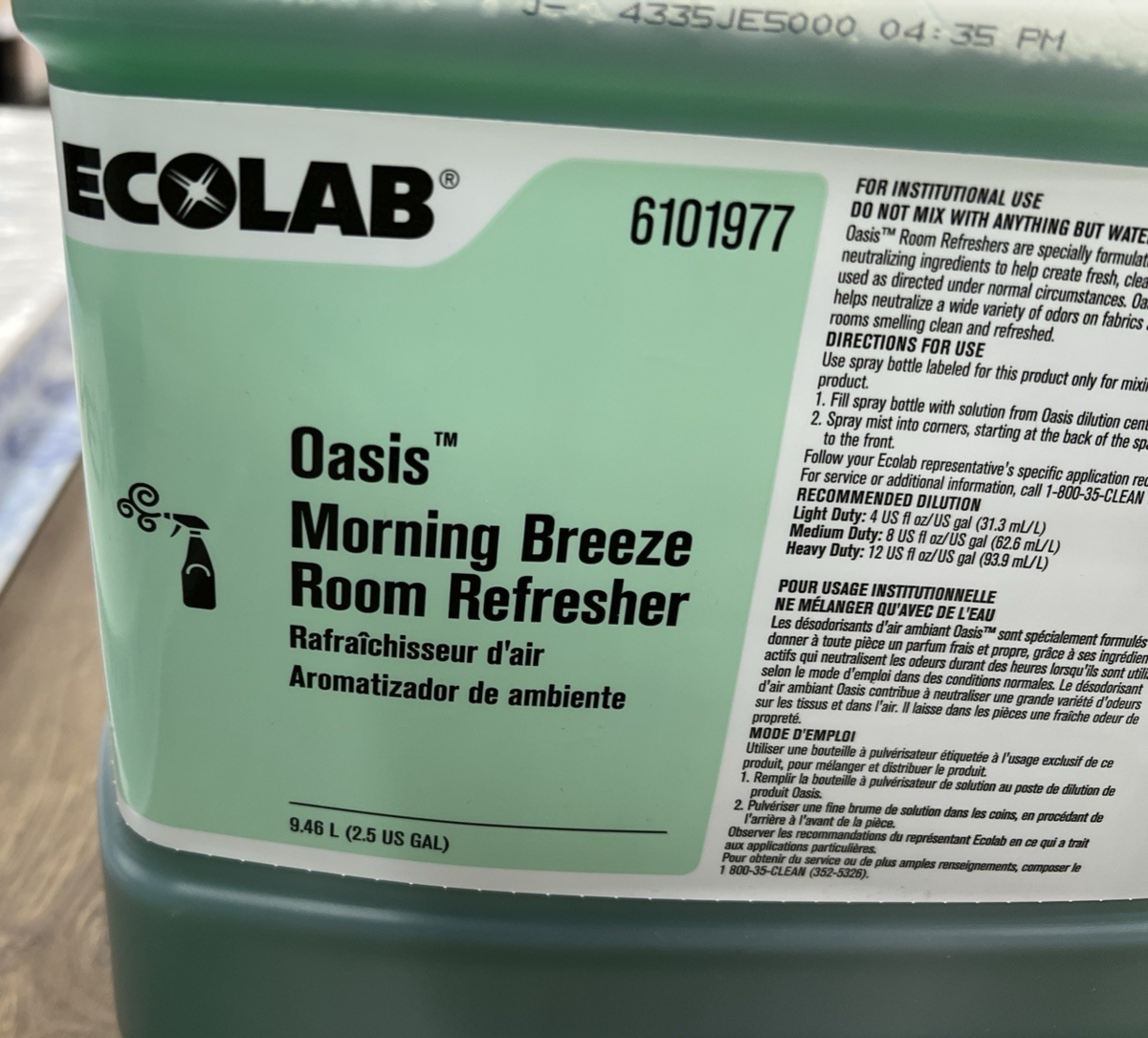 Ecolab 6101977 Oasis Morning Breeze Room Refresher 2.5 Gallons NEW