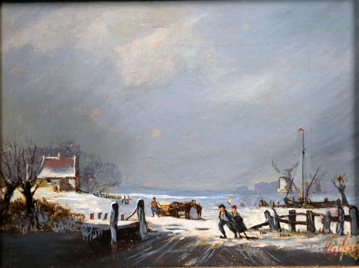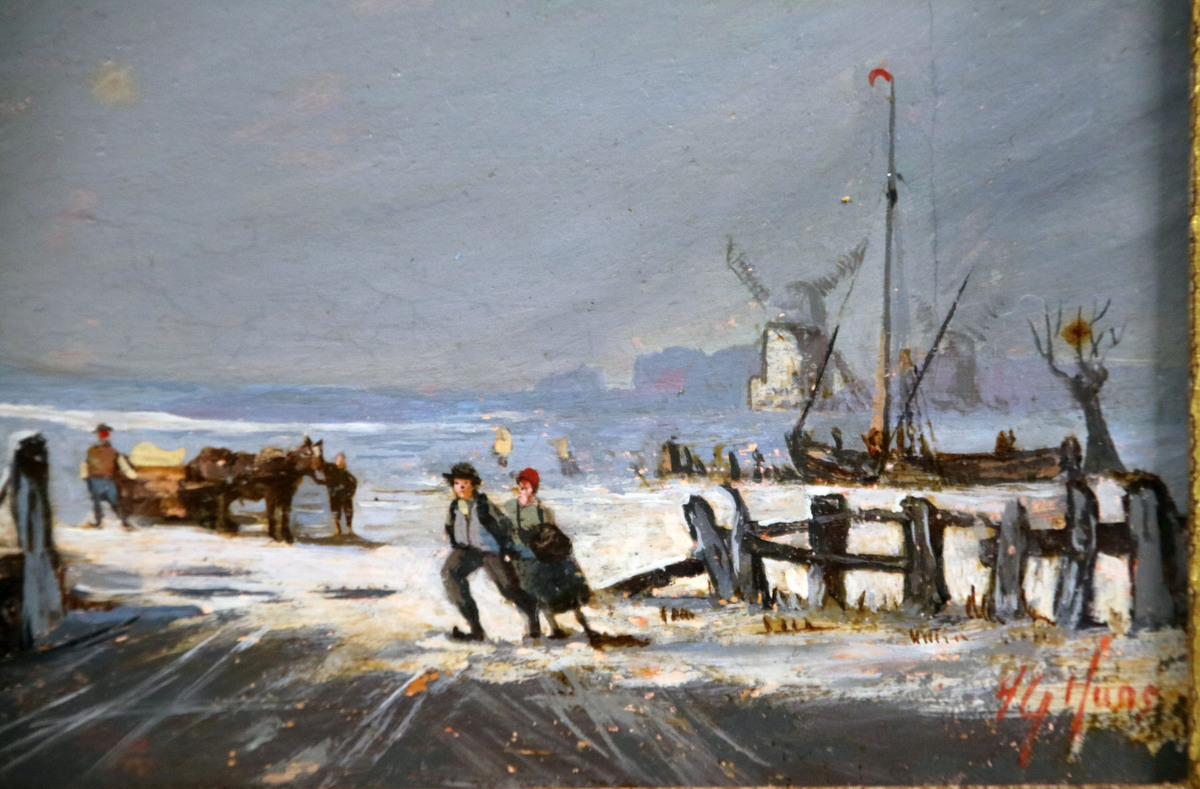 Hans was a Dutch Romantic landscape painter known for winter scenes, frozen waterways, and atmospheric rural compositions. His works appear regularly at European sales and remain sought after for their charm and detail.